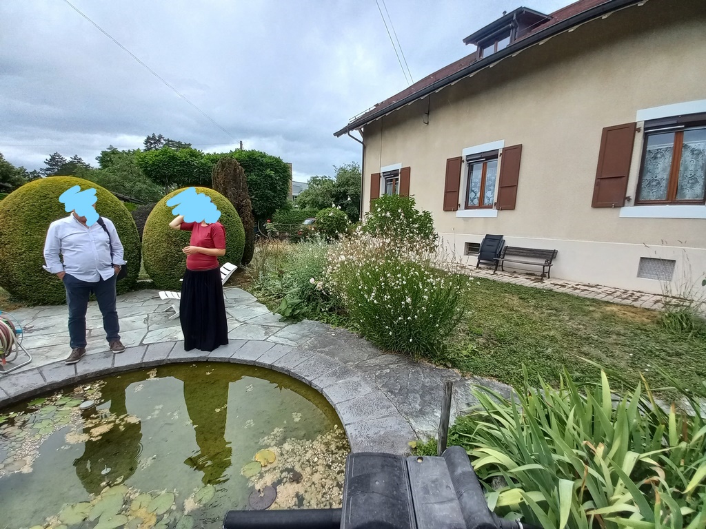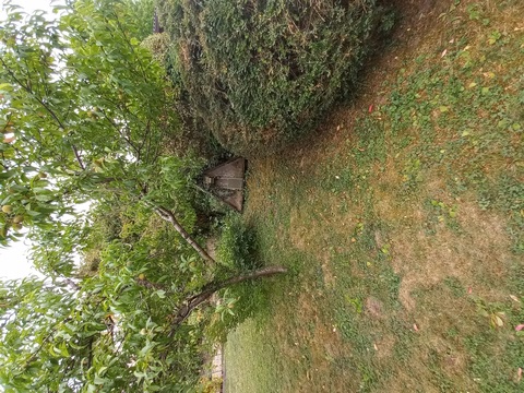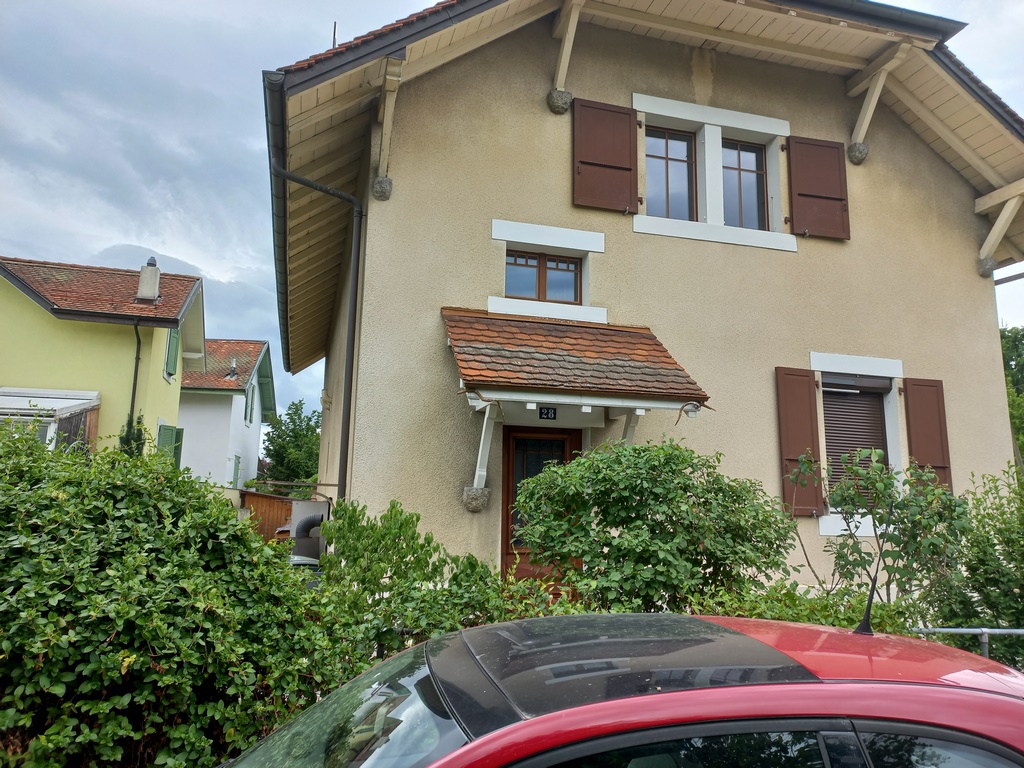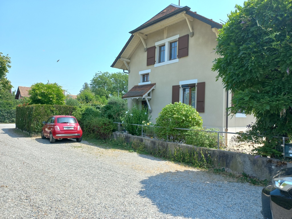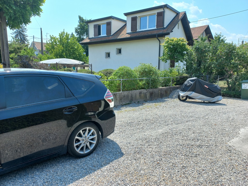 Depuis la rue. La voiture rouge est garée sur la parcelle 4009