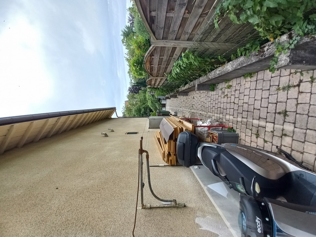 Depuis la rue. La parcelle 4009 va jusqu'au coin derrière la moto