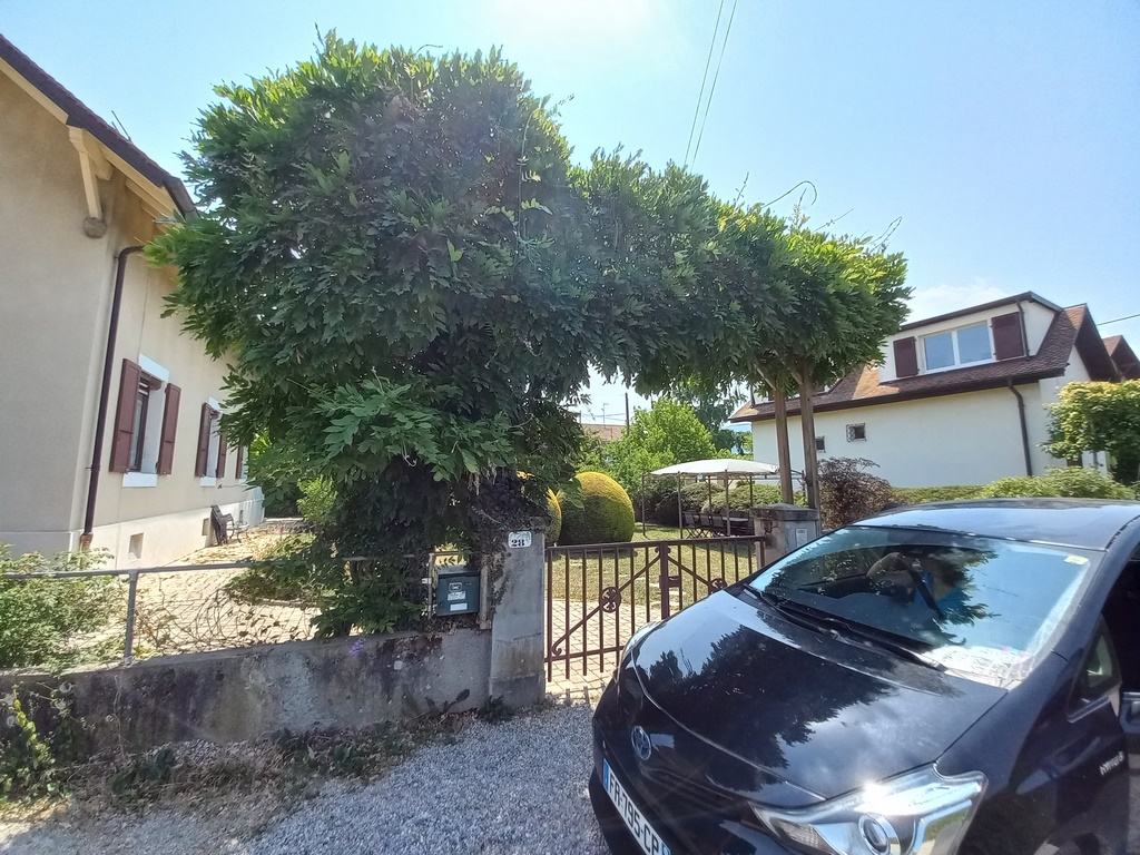 Depuis la rue. La voiture est garée sur la parcelle 4009
